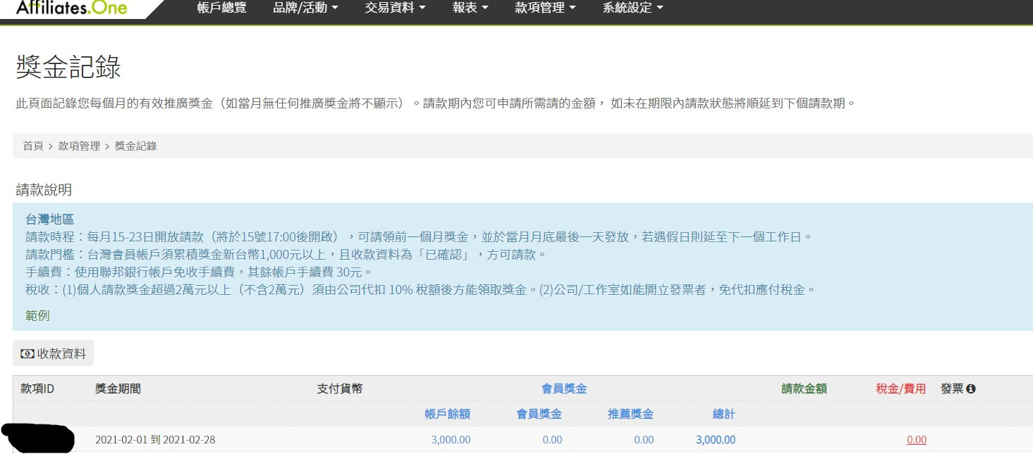 我覺得Affiliates.One 聯盟網最棒的地方是在有不低的獎金,