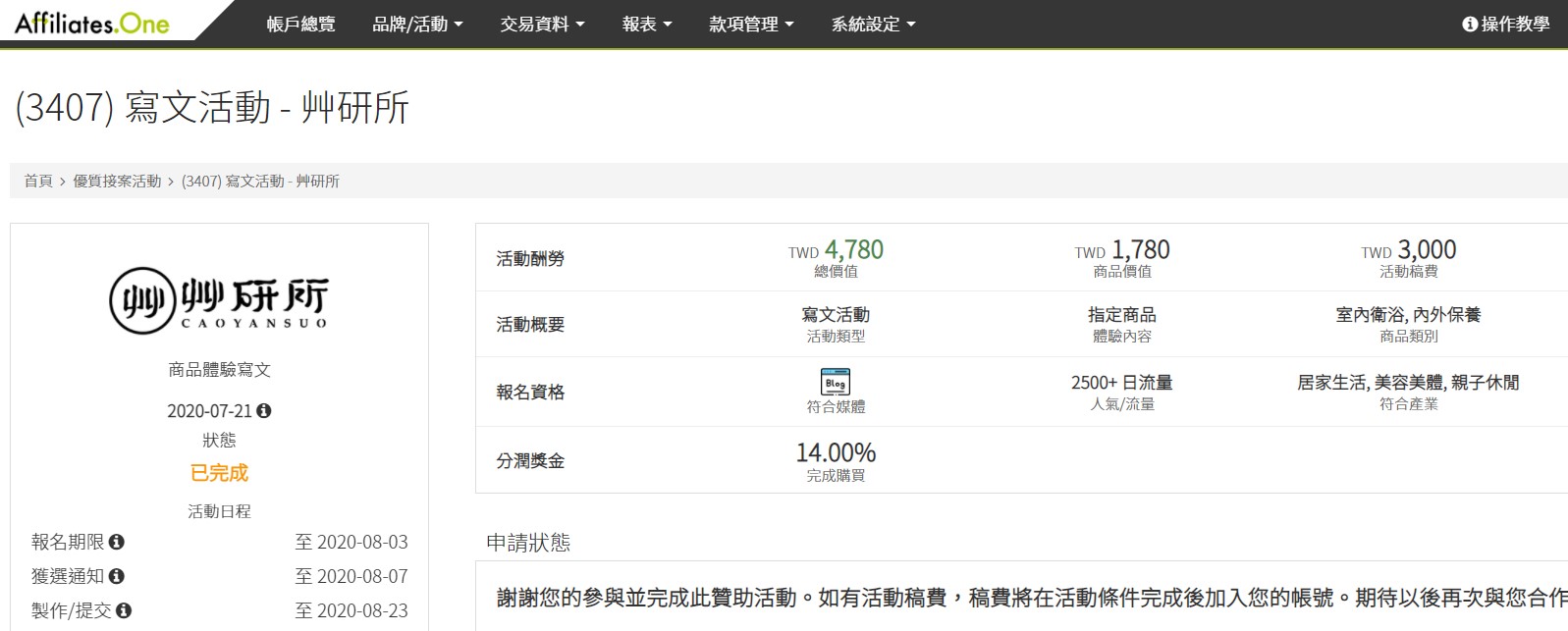 加上透過Affiliates.One 聯盟網常舉辦活動,我的形象可以讓更多品牌看見,