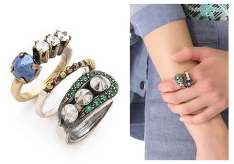 方形锆石和混色饰钉为这款三环重叠的戒指带来迷人光泽和朋克摇滚风。可单独佩戴。