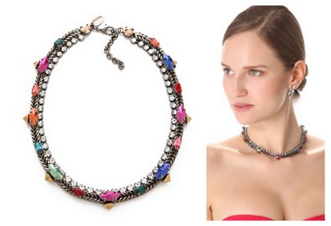 這款像是這幾年流行的,型狀和外型有點類似,應該很多人會接受,而且這類的頸部配飾都非常好跟服裝做搭配!另外他上面珠寶的設計偏向不規則,還蠻有特色的顏色是黑色,超有個性且迷人!看更多詳細內容請至Shopbop.com